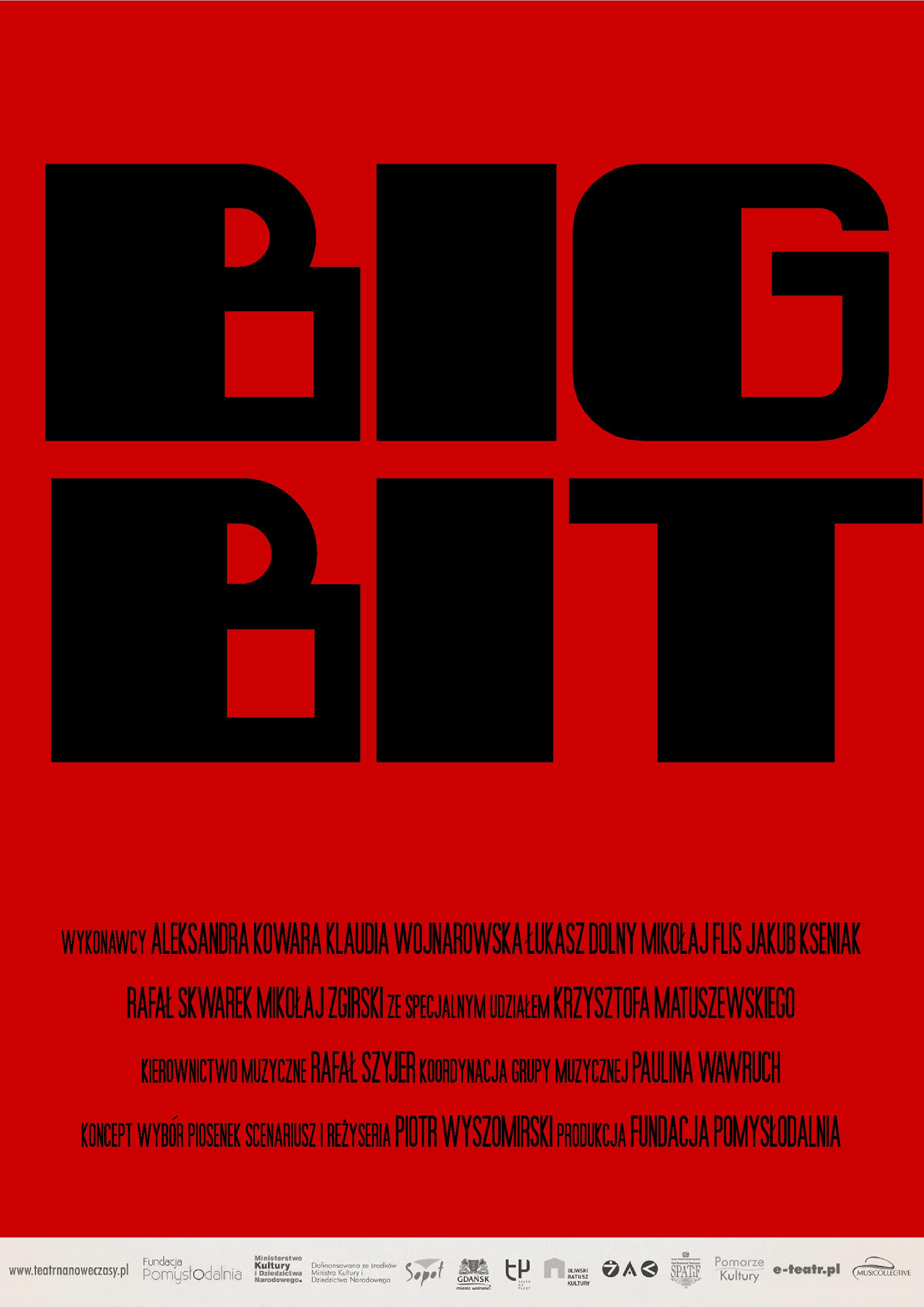 „Bigbit” to po trosze hybryda gatunkowa. Połączenie teatru dokumentalnego z muzyką i performatyką. Kanwą opowieści jest fragment dziejów najpopularniejszego, polskiego zespołu lat 60., legendarnych, choć wciąż przecież żywych i koncertujących, Czerwonych Gitar. Czas opowieści to lata 1965-70, czyli od powstania formacji do odejścia Krzysztofa Klenczona i feralnego dla zespołów bigbitowych koncertu, który uznawany jest nieoficjalnie za zamknięcie epoki beztroskiego muzykowania. Narracja prowadzona jest kilkoma, przecinającymi się ścieżkami. Pierwsza to historia zespołu, druga kontekst historyczny (wydarzenia, fakty z historii Polski tamtego czasu), trzecia to stosunek dzisiejszych, młodych muzyków do dzieł dziadków, czyli młodych w latach 60. Te ścieżki przeplatają się i zderzają.